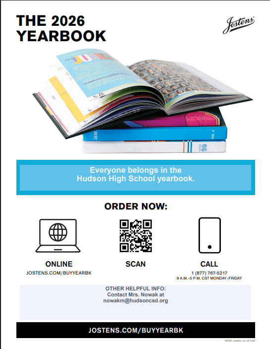 If you have any questions or concerns regarding the yearbook, don’t hesitate to contact the co-advisors, Michelle Nowak nowakm@hudsoncsd.org and Jodi Keyser keyserj@hudsoncsd.org